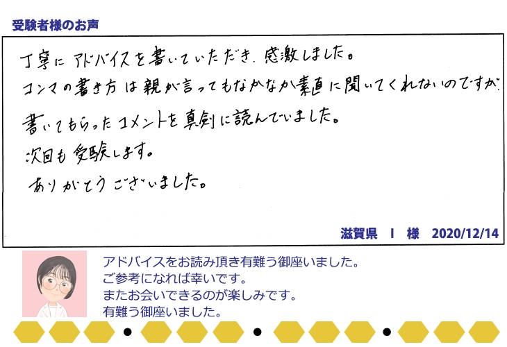 (答案用紙に一言アドバイスを付けてお返しします)