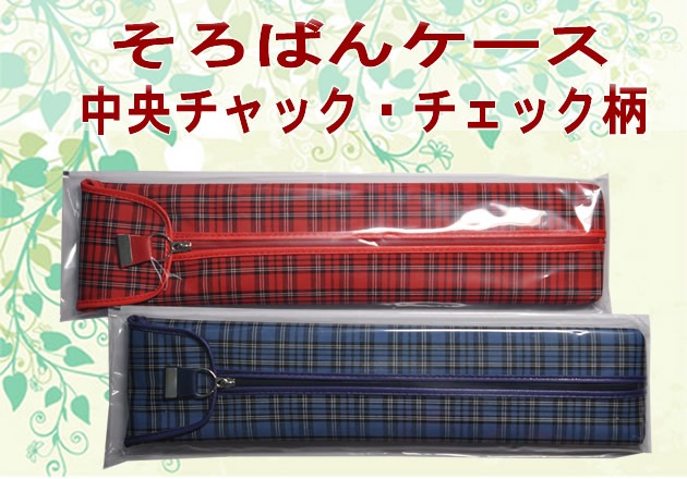 そろばんケース【23桁】【青チェック柄】(中央ファスナー)