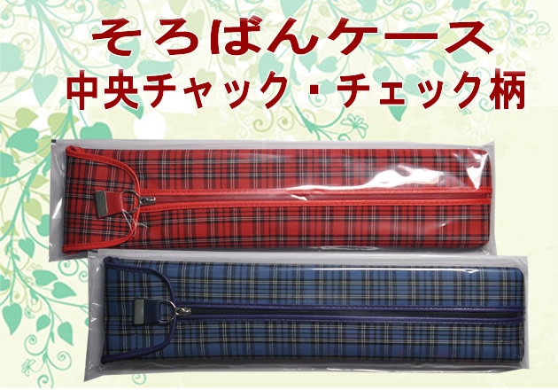 そろばんケース【23桁】【赤チェック柄】(中央ファスナー)